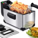 The Presto 05411 GranPappy Electric Deep Fryer offers a 6-cup oil capacity with 1500 watts of power, featuring a fixed 375°F temperature and non-stick interior for easy cleaning, all in a compact 9.1 x 8.8 x 8.5-inch, 4.2-pound design. The Vexon 1800W 5 Liters/21 Cups Large Electric Deep Fryer boasts a 5-liter capacity, adjustable thermostat…