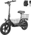 8.5″ or 10″ tires for smooth rides on various surfaces.Top speed of 15.5 mph and a 12-mile range per charge.