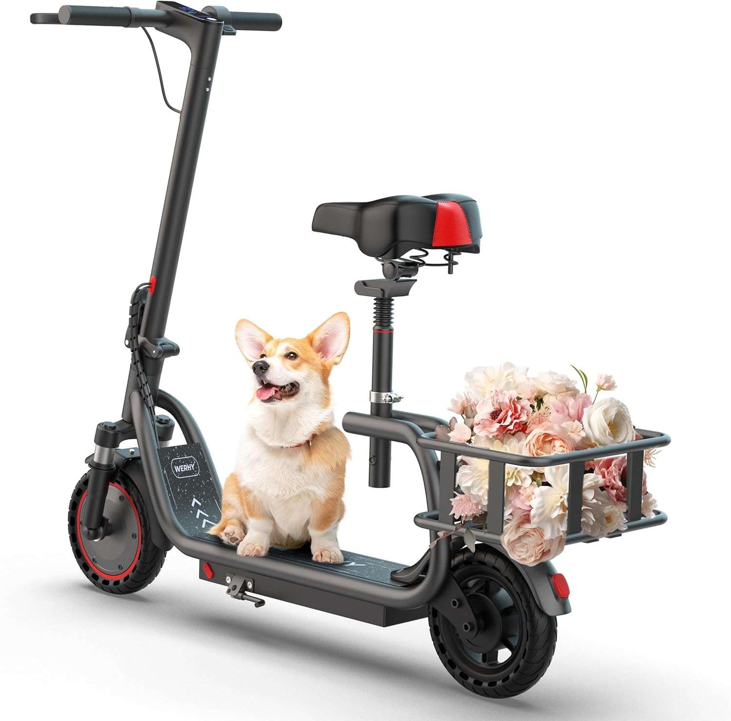 8.5” solid tires with suspension for stability and comfort.
