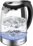 Heats water quickly with 1500W powerBorosilicate glass body shows water level