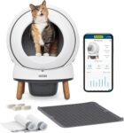 App connectivity allows real-time monitoring of litter levels, waste drawer status, and cat activity.